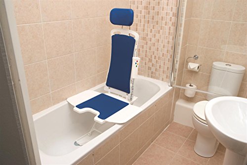 The Bellavita Bathlift is easy and lightweight to dismantle. Lowers from 48 cm to 6 cm in the bath. Lightweight handset with integral Lithium Ion battery. Reclines 50 degree to the bath. 140 kg Weight capacity. Classic white.