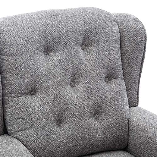 Upholstered in a high-quality, textured fabric with a buttoned back cushion