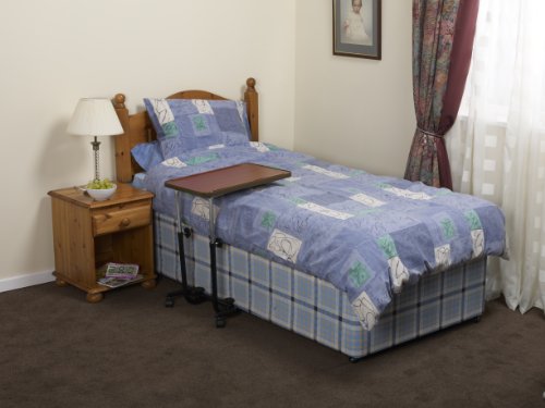 This NRS Healthcare M01278 overbed table is ideal to use all around the home, especially in the bedroom or living room. The table allows you to sit comfortably in bed or a chair with a handy table nearby. It can be used by both children and adults and is particularly helpful for wheelchair users. The table is good item for people who spend a lot of time in their bed or chair. This could be because of a lack of mobility or a recent injury or operation. Versatile support for range of activities.Height adjustable between 56cm – 84cm (22” – 33”). Top measures 53cm W x 40cm D (20¾” x 15¾”).