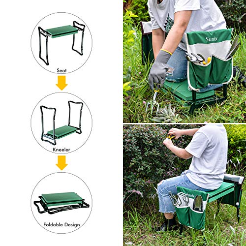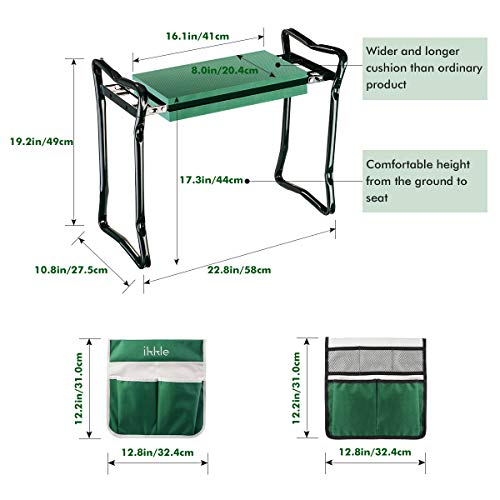 ➽HIGH QUALITY STEEL PIPE, COMFORTABLE EVA FOAM & PLASTIC➽Durable and strong-quality of paint on the top and bottom of the rails will be worn off for long time use. Seat and tool pocket dyed by fade-less dye will not fade very quickly in the sun or become unevenly, all colors are perfectly matched with the yard or garden. The steel pipe has anti-rust paint treatment, lightweight and portable can be stored outside in redwood potting shed without rot or deteriorate, or store indoor hanging on wall.