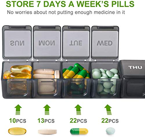 OUT WITH ONE-WEEK MEDICINE:Individual daily boxes allow you to take when you are out with 1-week medicine.Every daily box can hold up to 10 fish oils or 13 large vitamins