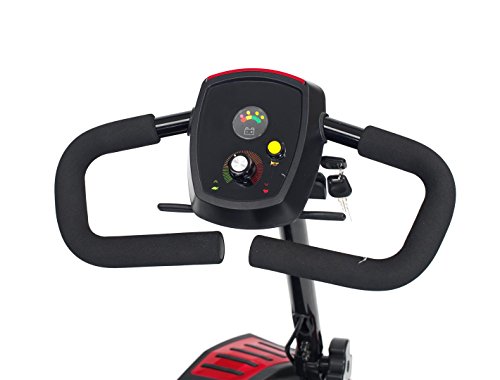 Most sensible speed of 4mph – Trendy silver wheel hubs – Black puncture proof non-marking tyres – Rear anti tip wheels as same old